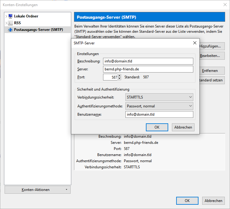Damit E-Mails per Mail-Client abgerufen werden können, muss ein Postfach mit POP3/IMAP-Unterstützung bestehen. Insofern dies der Fall ist, kann sich an der folgenden Tabelle orientiert werden.